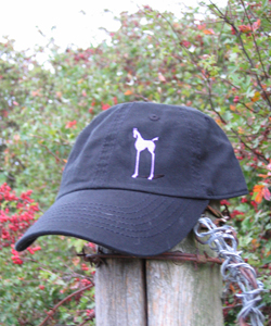 ‘Miss Filly Logo’ embroidered in lilac on a black garment washed cotton chino twill baseball cap. Velcro closure on back…soft and comfy!