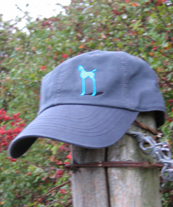 ‘Miss Filly Logo’ embroidered in peacock blue on a charcoal grey garment washed cotton chino twill baseball cap. Velcro closure on back…soft and comfy!